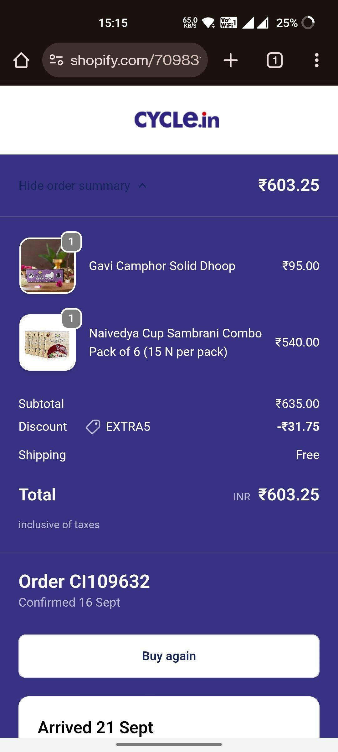 At Cycle.in, we strive to deliver your order in the quickest, safest, and most economical way possible. We process all