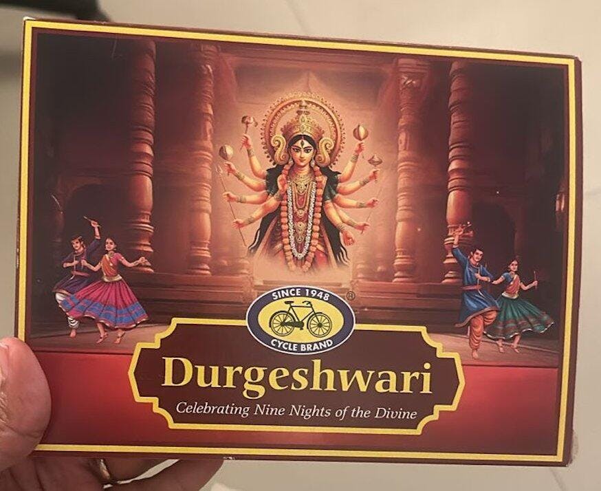 2. Agarbathi Pack: 9 packs with 2 color coded sticks each for each day of Navratri